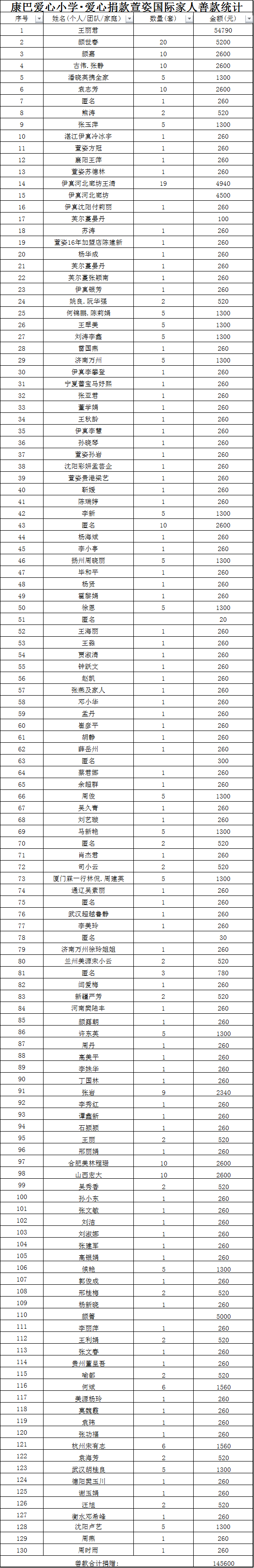 本次“康巴爱心小学捐赠活动”收到善款明细如下: