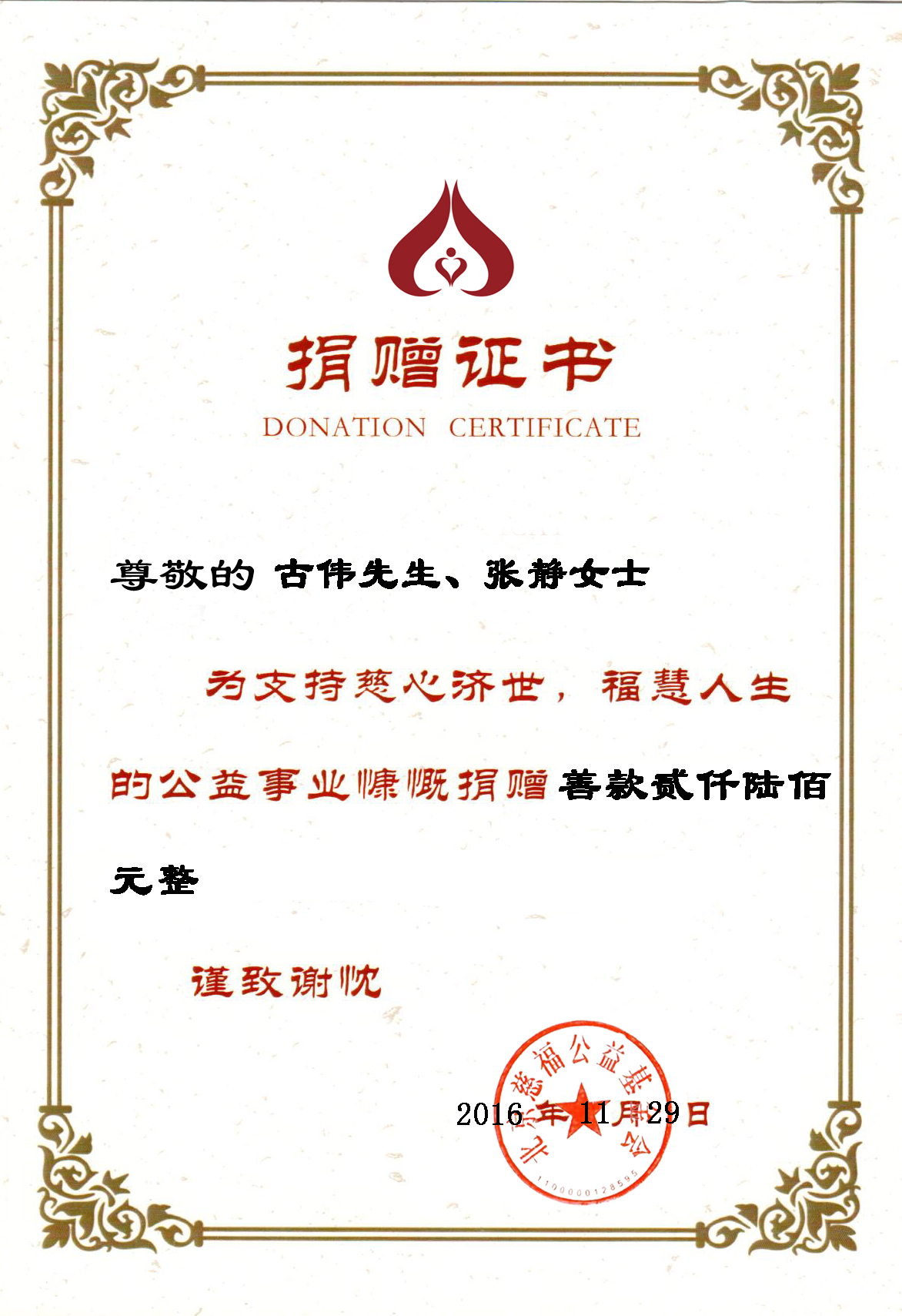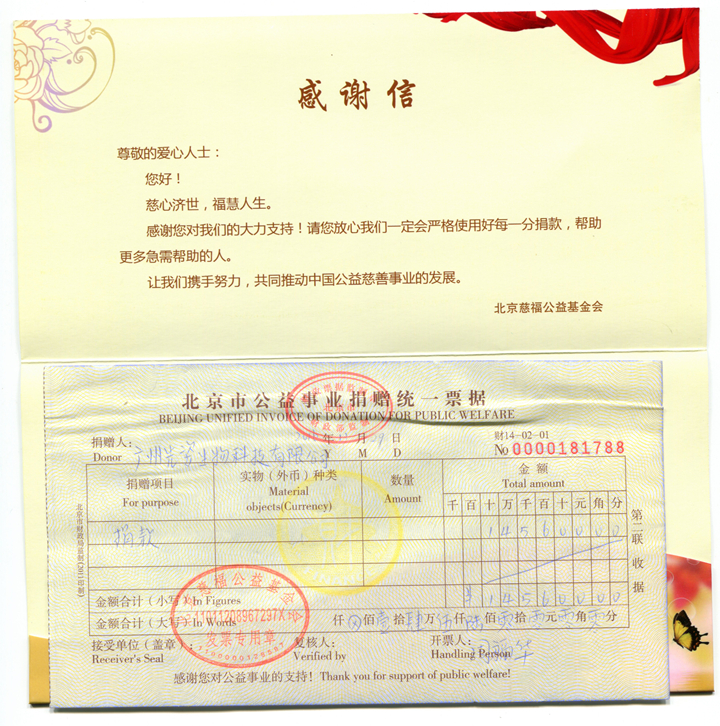 每一位爱心捐款人士,北京慈福公益基金会将为您颁发捐赠证书。请提供您的邮寄地址至萱姿国际邮箱:417496681@qq.com。
